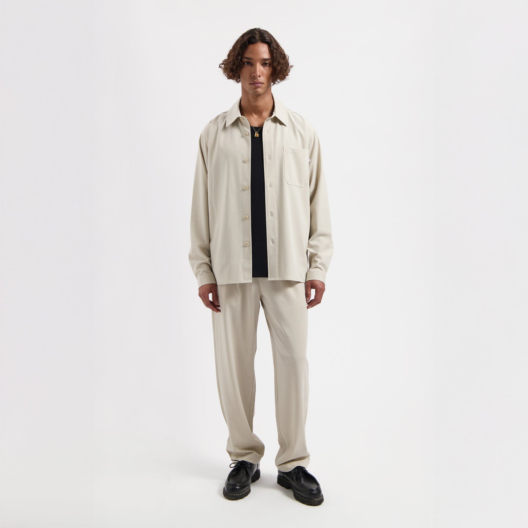 Odkryj wyjątkową jakość koszuli garniturowej Teria. Premium mieszanka (67,5% Polyester, 18,9% Viscose, 5,2% Elastane, 410gsm) zapewnia komfort i elegancję.